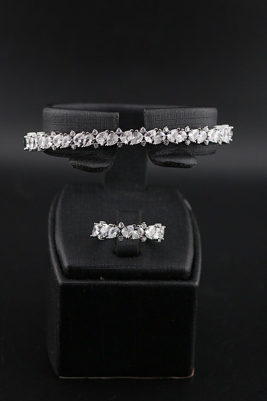 دستبند النگویی و انگشتر نقره کارتیر زنانه