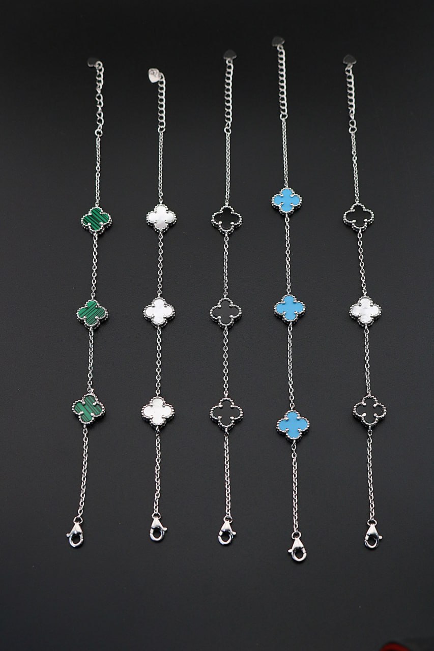 دستبند نقره ونکلیف تراش و سبز پنج گل زنانه
