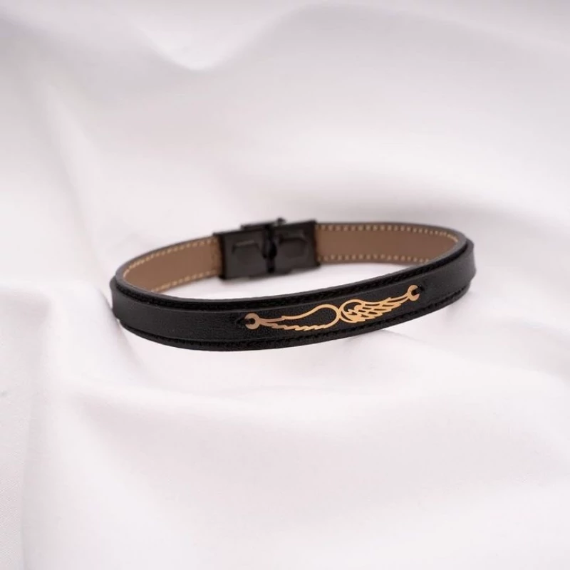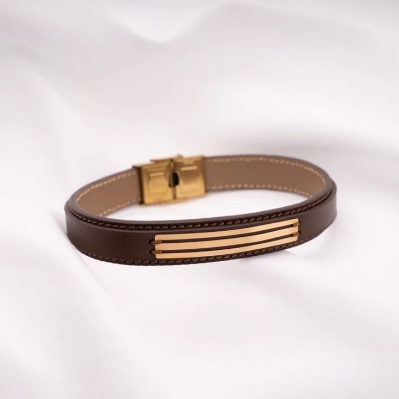 دستبند چرمی نقره سفارشی بهمراه آبکاری طلا کد 40