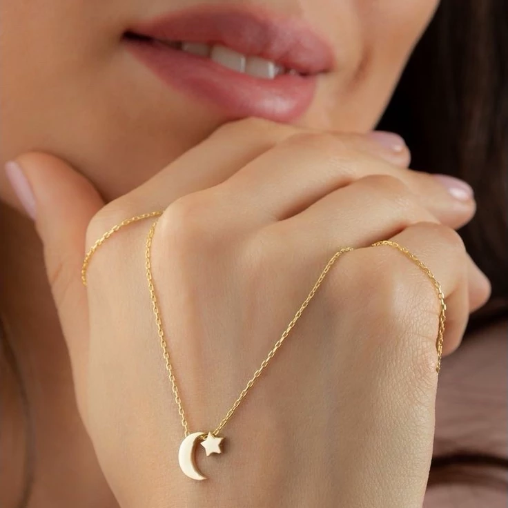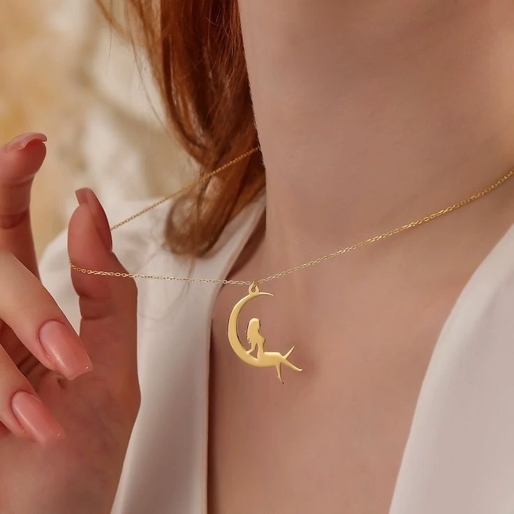 گردنبند نقره سفارشی ماه پری بهمراه آبکاری طلا کد 93