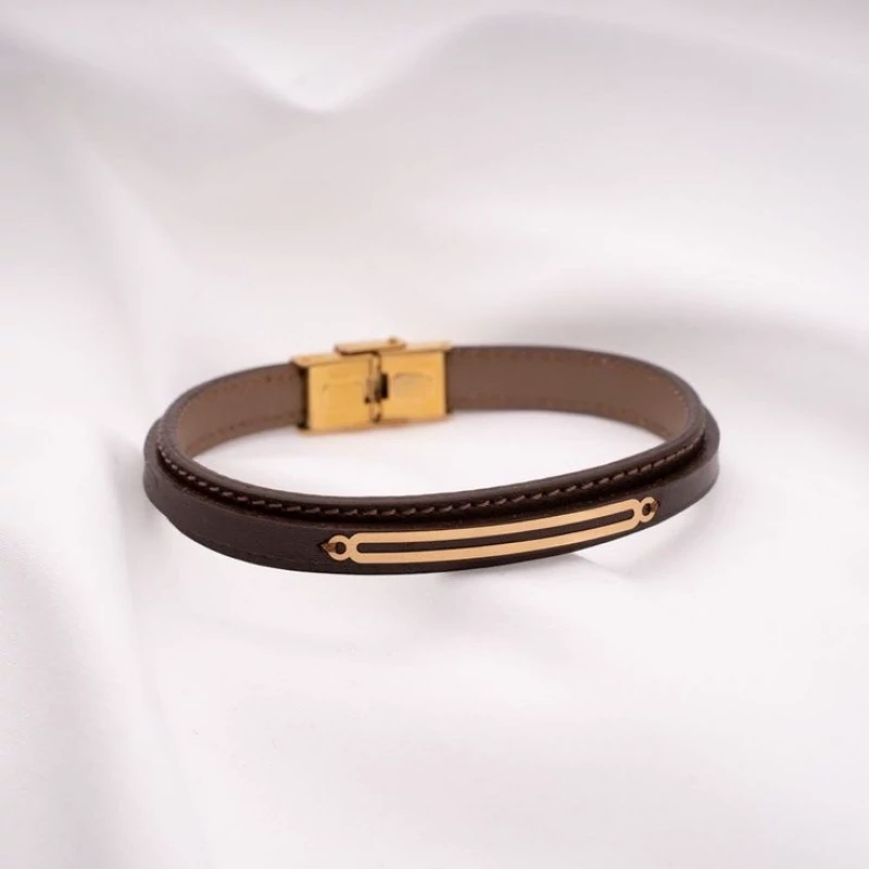 دستبند چرمی نقره سفارشی بهمراه آبکاری طلا کد 37