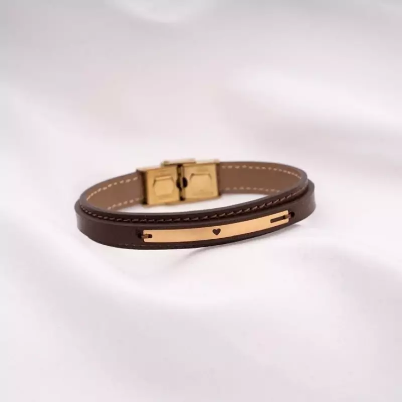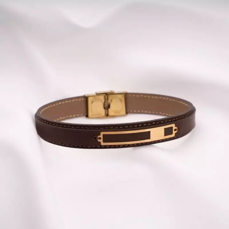 دستبند چرمی نقره سفارشی بهمراه آبکاری طلا کد 45