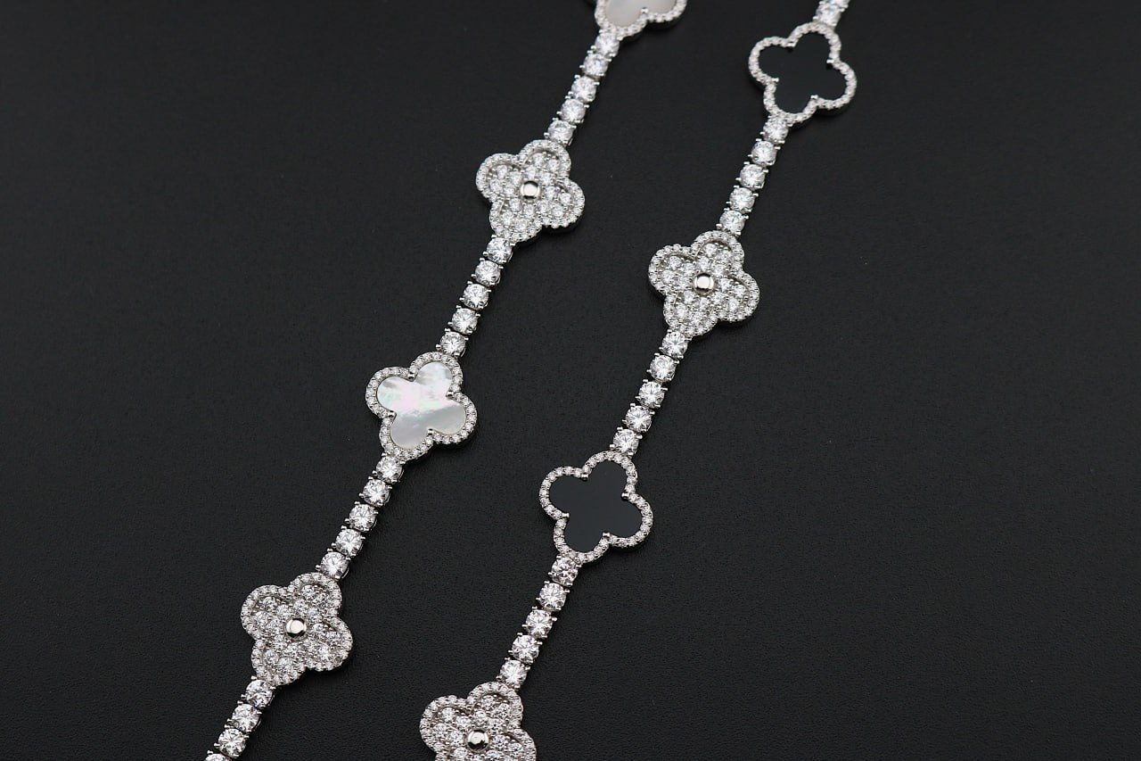 دستبند نقره ونکلیف طرح جواهر پنج گل زنانه