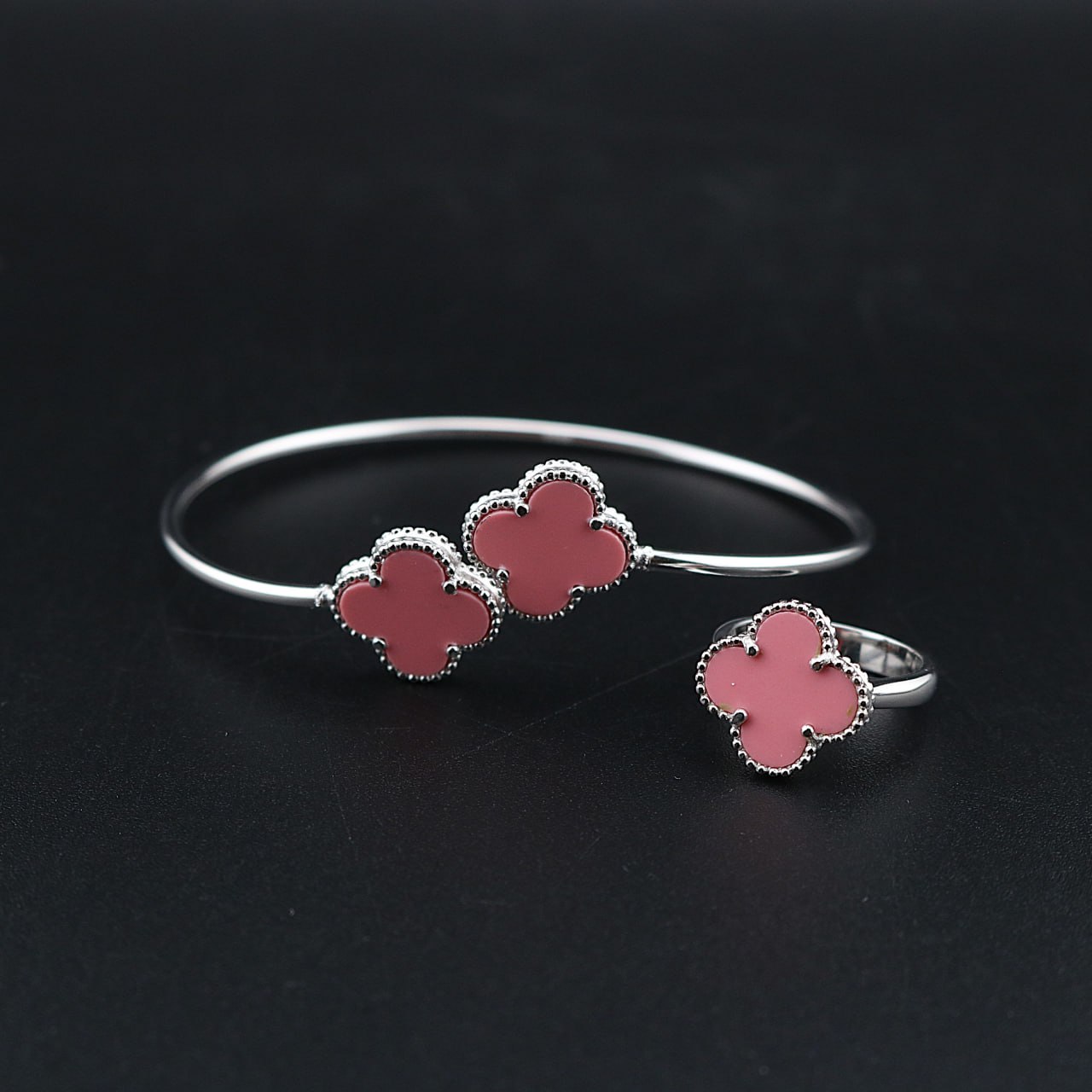 ست دستبند و انگشتر نقره ونکلیف زنانه