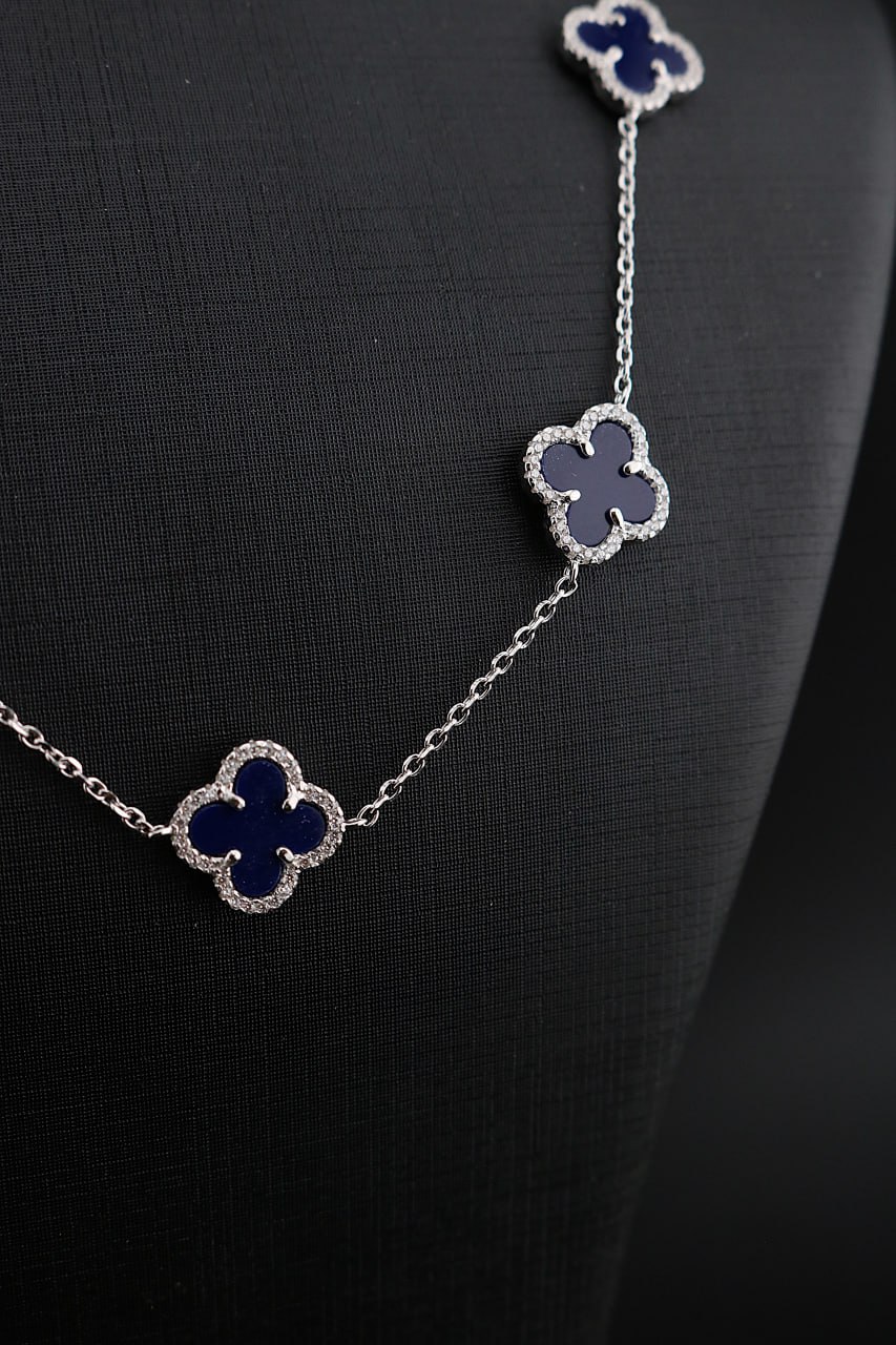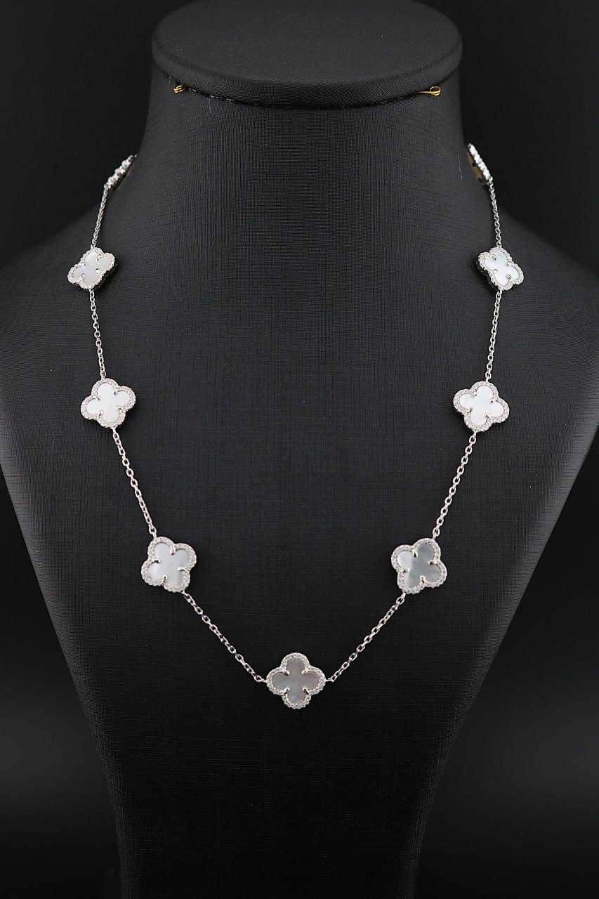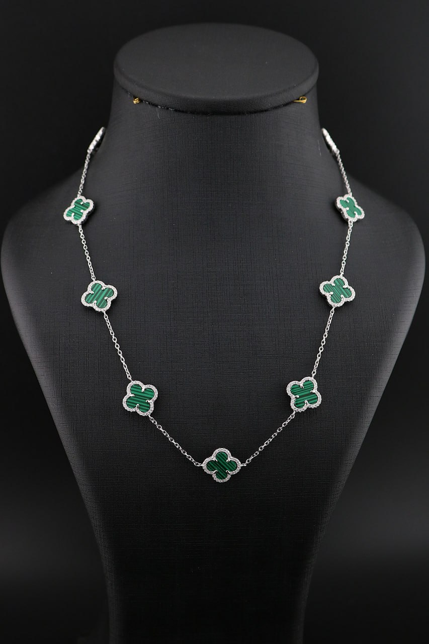 گردنبند نقره ونکلیف ١٠ گل دور نگین زنانه در رنگبندی