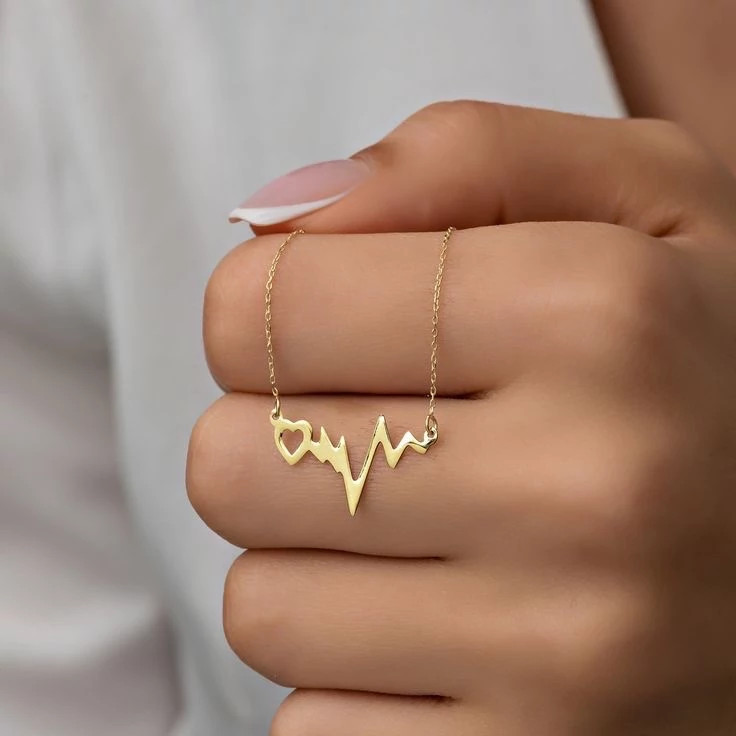 پلاک نقره سفارشی ضربان قلب بهمراه آبکاری طلا کد 71