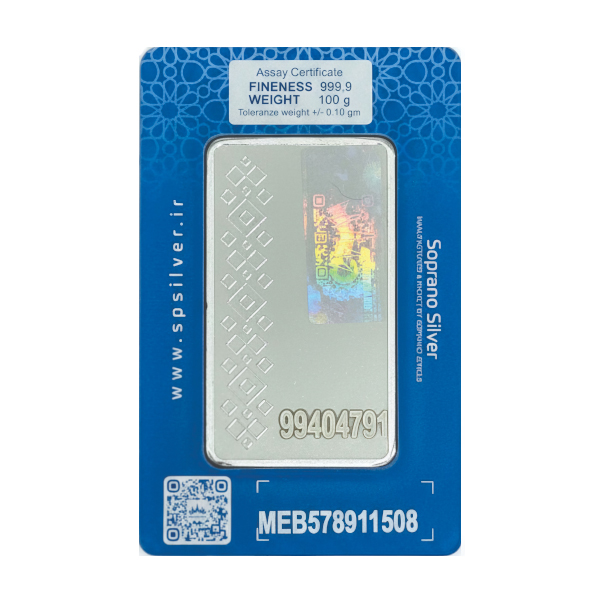 شمش نقره ١٠٠ گرمی سوپرانو عیار٩٩٩.٩ soprano (استعلام قیمت به لحظه)