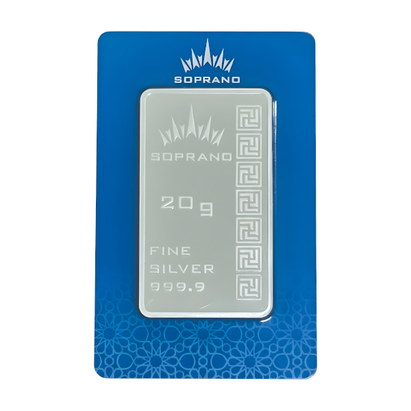 شمش نقره ٢٠ گرمی سوپرانو عیار٩٩٩.٩ soprano (استعلام قیمت به لحظه)