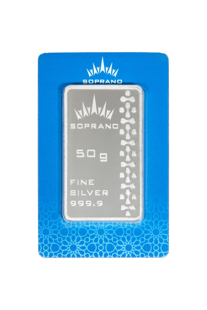 شمش نقره ۵٠ گرمی سوپرانو عیار٩٩٩.٩ soprano (استعلام قیمت به لحظه)