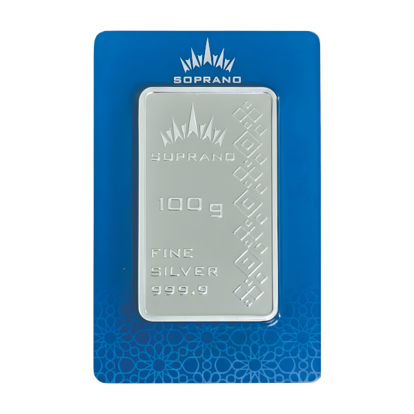 شمش نقره ١٠٠ گرمی سوپرانو عیار٩٩٩.٩ soprano (استعلام قیمت به لحظه)